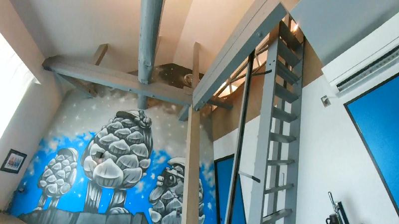 さらにロフトがあり、上がってみると隠れ家感あふれる寝室がありました。