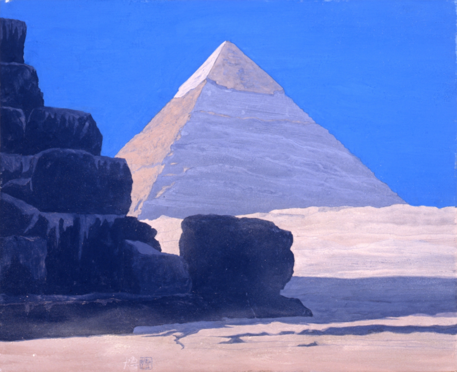 日本だけでなく海外にも視野を広げていく本展。中国・蘇州の水郷をみずみずしい筆致で表した竹内栖鳳《城外風薫》をはじめ、霧に包まれたイギリス・ロンドンのタワーブリッジを捉えた平山郁夫《ロンドン霧のタワァ・ブリッジ》、晴天の下に立つエジプトのピラミッドを描いた千住博《ピラミッド「遺跡」》などが登場する。