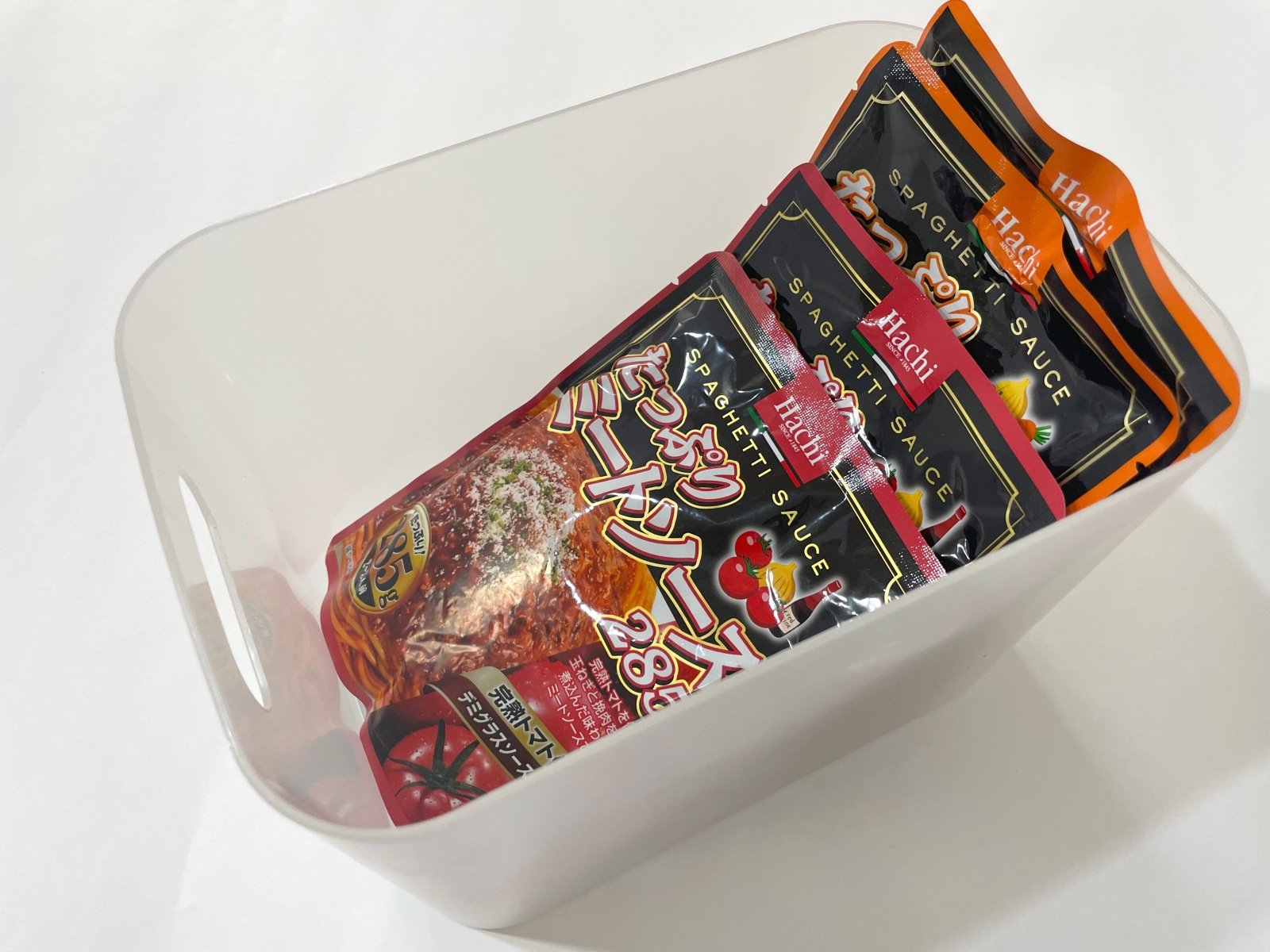 種類別で仕分けるのも、おすすめの使い方です。見やすく整理できることで、在庫を把握しやすくなり、ローリングストックにも役立ちます。