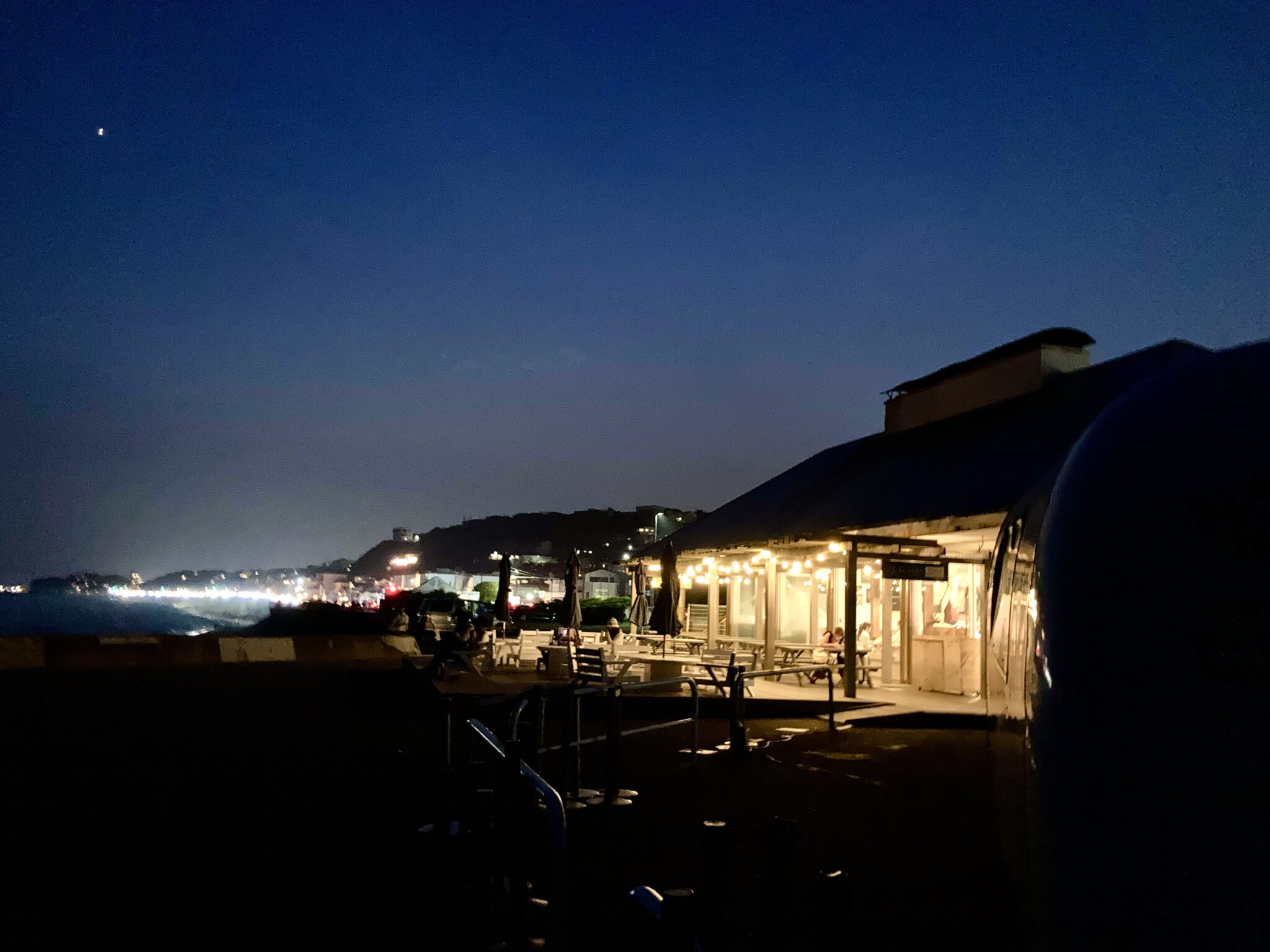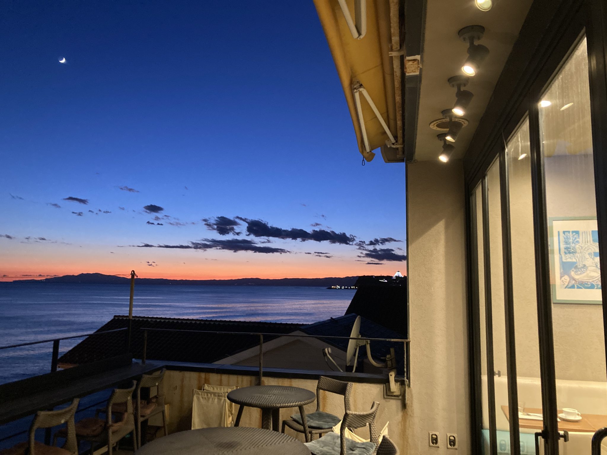 江ノ電七里ヶ浜駅からすぐ、テラス席からは江の島や富士山も望め、特に空気の澄んだ冬は絶景が広がります。