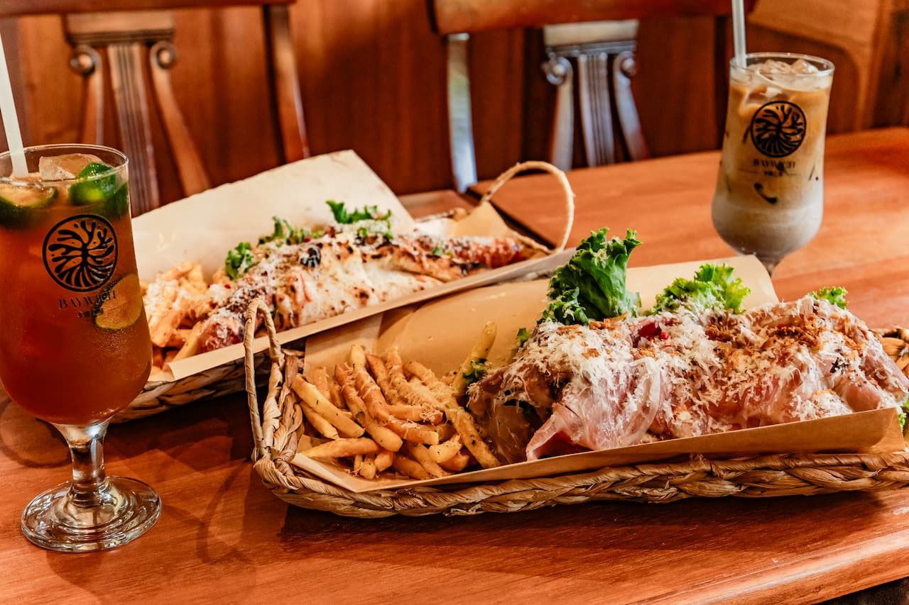 人気イタリアンバル「窯焼き&バル MARUMIYA CRAFTER」の系列店「BAYWICH」2号店が、今帰仁村にオープン!ピザ生地で具材を包んだ、新感覚のサンドイッチが味わえるお店です。 築60余年の古民家を改装した店内は、どこを切り取ってもフォトジェニック。見た目にも楽しい全6種のサンドイッチは、ピザの人気メニューをアレンジしたものから、野菜たっぷりのヘルシーなもの、ガツンとボリューム満点のものまで多彩にそろいます。 美ら海水族館や古宇利島、ジャングリア沖縄など北部の主要観光スポットからアクセスしやすく、朝9時からオープンしているので、観光やドライブ前の立ち寄りにもぴったりです。