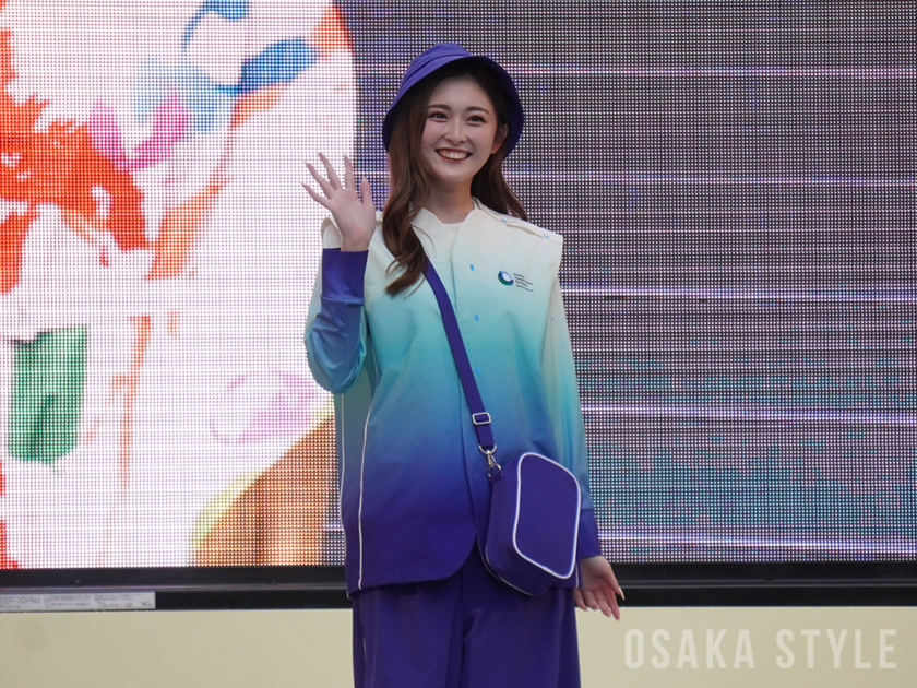 ファッションショーには、万博のパビリオンのユニフォームを着用したモデルがランウェイを闊歩。大阪出身の紅ゆずるさんやゆうちゃみさん、大阪・関西万博公式キャラクターの「ミャクミャク」も登場し、会場を盛り上げた。