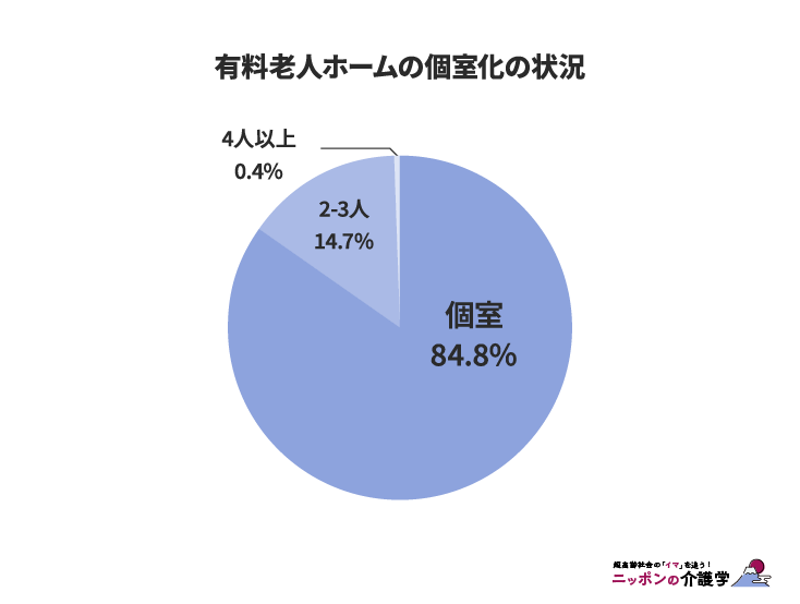 上記のデータが示すように、有料老人ホームの84.8%が個室化されており、逆に5人以上の部屋は非常に少ない現状が見て取れます。