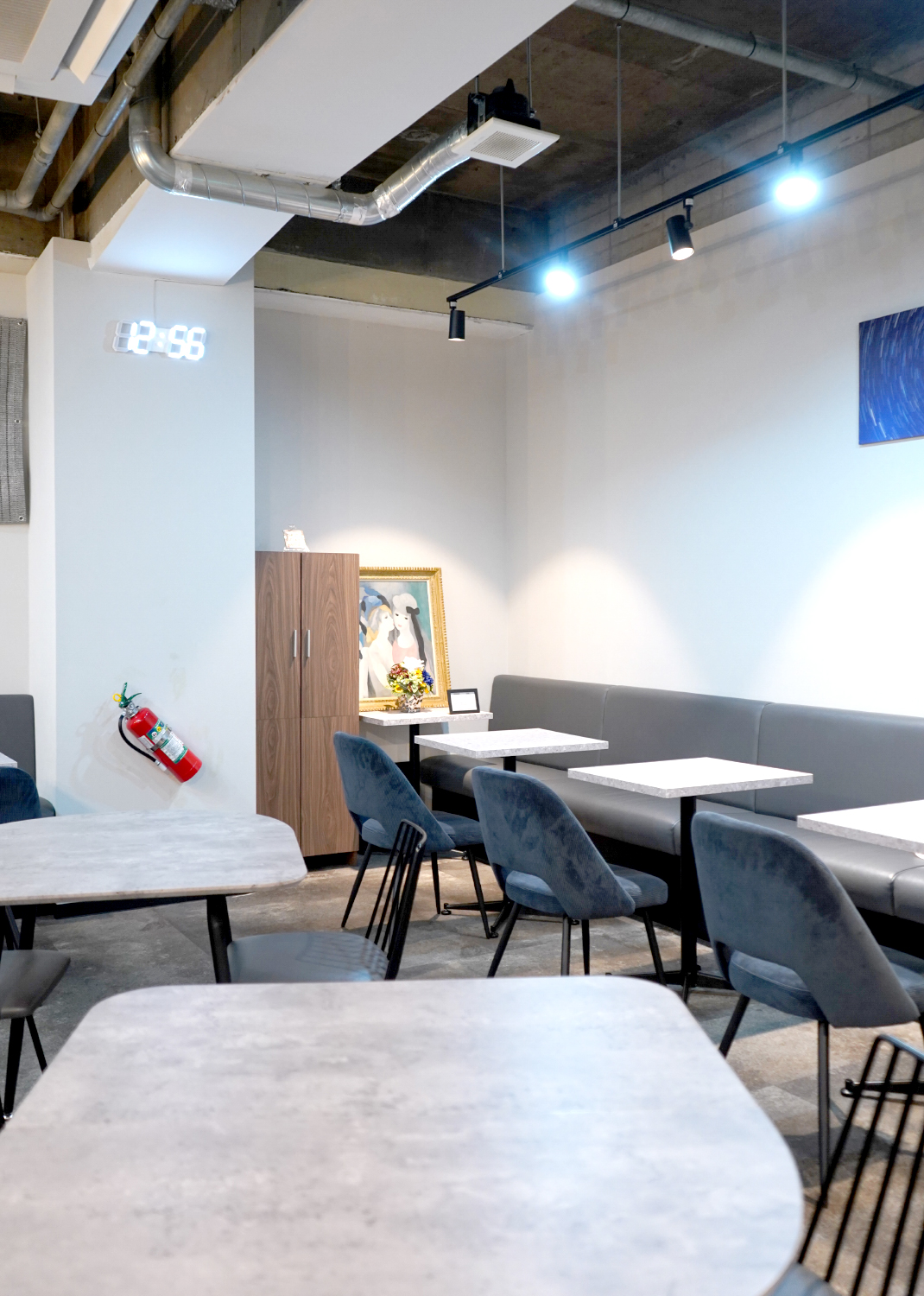 席間隔は広く取られていて快適な動線。ソファ席もあり、ワンちゃん連れもOKとのこと。ペットにやさしい街としても知られる元町で、愛犬と散歩に訪れた際に立ち寄れる場所はとてもありがたい。