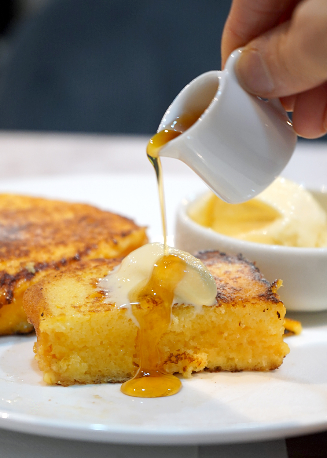 パンとは違う歯切れのよさと、ホクホク、ホワホワ、な食感が楽しく、パウンドケーキならではの旨味が幸福感を倍増させる。
