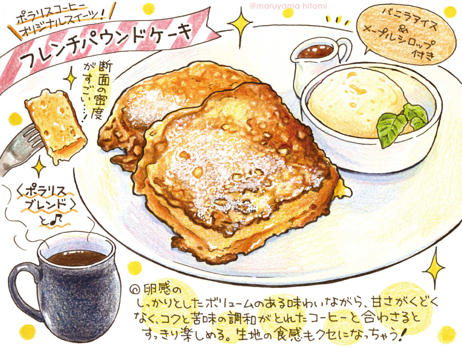 コーヒーの引き立て役としてスイーツにも力を注ぐ。目指す味になるまで繰り返し試作をし、納得がいくまで作った。食感、口当たり。組み合わせるコーヒーによっていろいろな表情になる。チーズケーキやプリンなど定番の人気者が揃う中、唯一無二といえるフレンチトーストが存在するという。