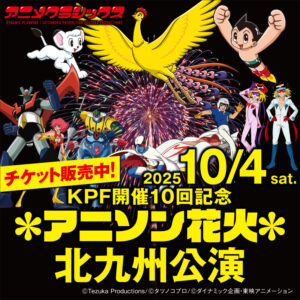 2025年10月4日(土)、ミクニワールドスタジアム北九州が、アニメファンにとって“夢のスタジアム”に変わる一夜。KPF(北九州ポップカルチャーフェスティバル)開催10回記念として企画された今回の公演では、昭和から平成にかけてのレジェンドアニメの名曲たちが、映像と音楽、そして花火の演出と共に夜空を彩ります。