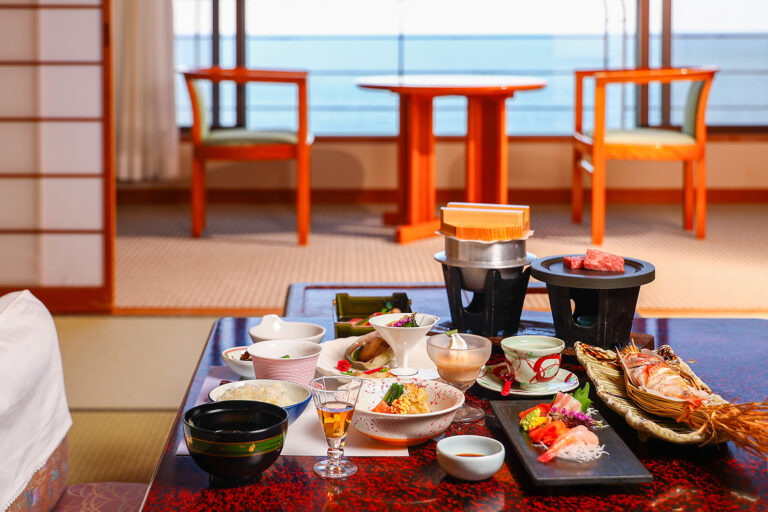 【おすすめ部屋食プラン】『夕食部屋食 山海美食の饗宴プラン そよ風和室』1泊2食付き23,100円~(4名1室利用時の1名料金、入湯税別)朝食はレストラン会場でのバイキング形式(セットメニューの場合あり)