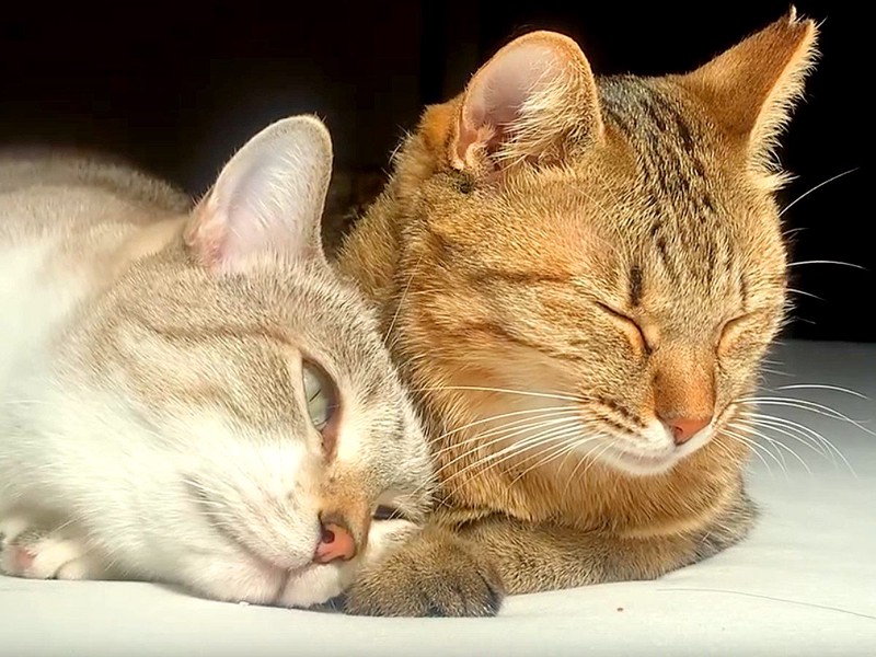 出会って3ヶ月のネコ→並んで寝ていると、1匹が甘えだして…思った以上に『愛おしい光景』が1万いいね「ラブラブやん」「ぐいぐい来るね」