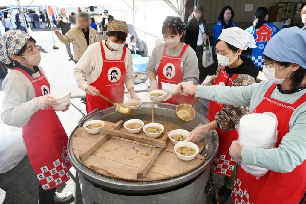 地場野菜がたっぷり入った豚汁や、地場野菜&農産物加工品の販売ブースがいっぱい!新米おにぎりの販売や、魚沼産のユリ飾りなど写真映えスポットも。魚沼市公式キャラクター「うおぬまっち」も遊びに来ますよ。