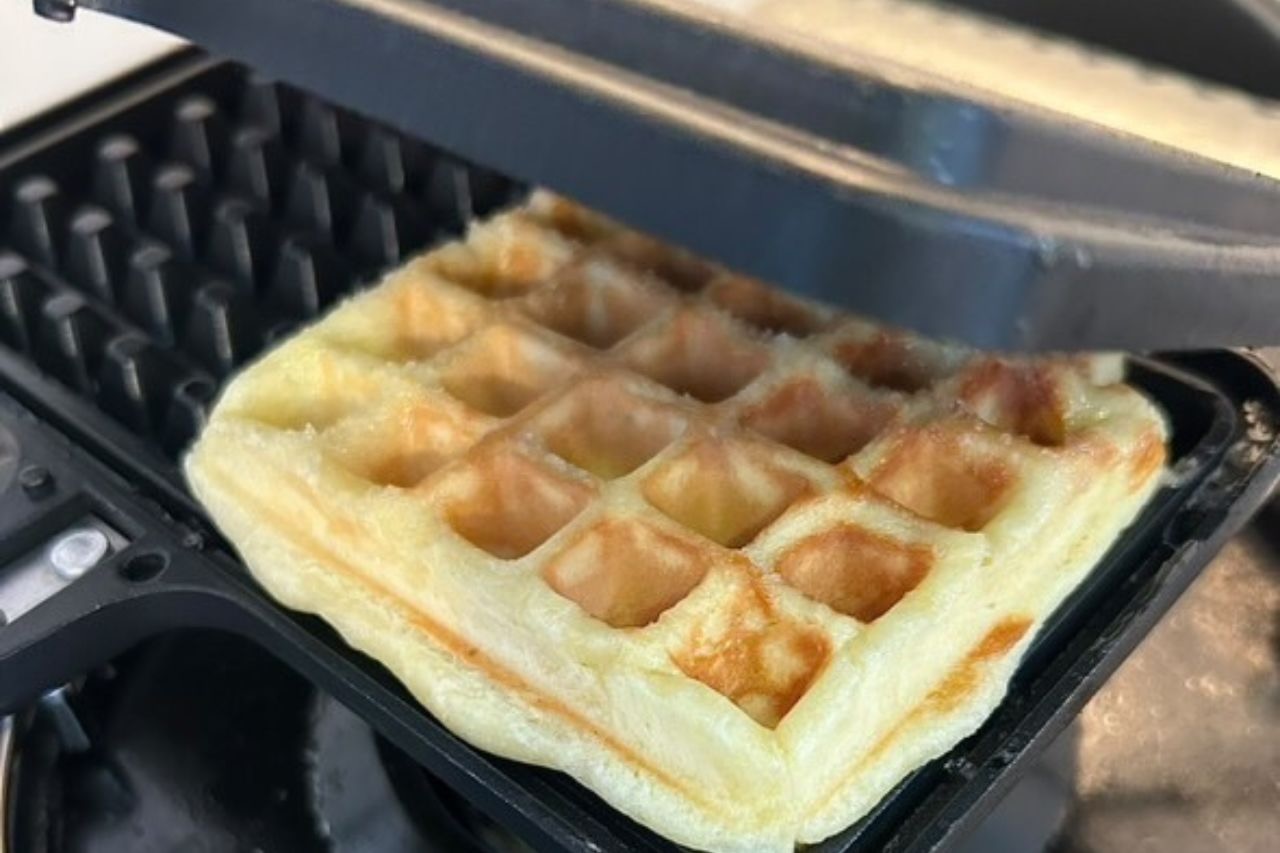 ドリンクを飲みながら待っていると、店内は何やらおいしそうな香りに包まれてきます。 「Flip Side Cafe(フリップサイドカフェ)」自家製ワッフルはオーダーを受けてから、発酵生地をていねいに焼きます。 一度に焼けるワッフルは2枚。焼きたてワッフルをのんびり待つ、幸せな朝の時間です。