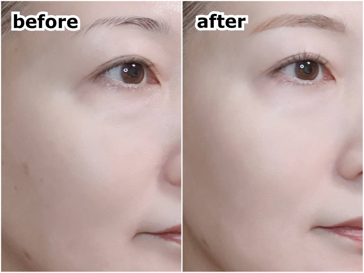 muice「スポットメンテパウダー」〈MC01 トトノエベージュ〉の塗布前(before)と塗布後(after)の画像を並べてみました。