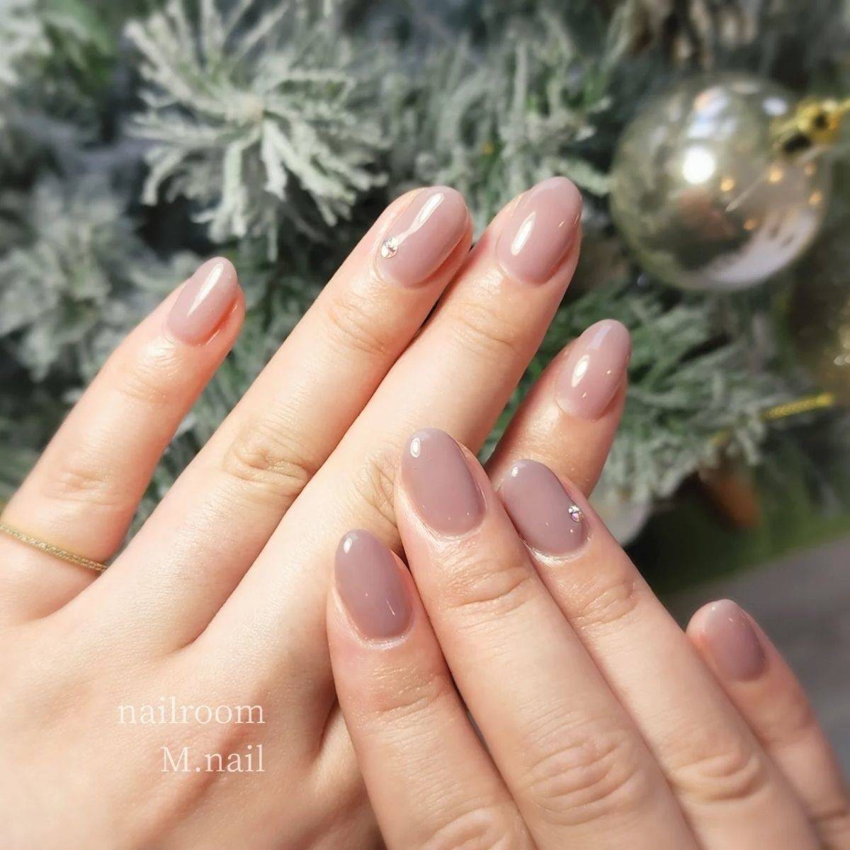肌に馴染む深めのピンクベージュは、初冬におすすめのネイルカラー♡