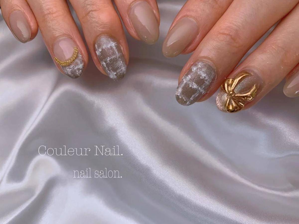 アクセントになるゴールドの組み合わせで、初冬らしいエレガントな指先が叶いますよ。