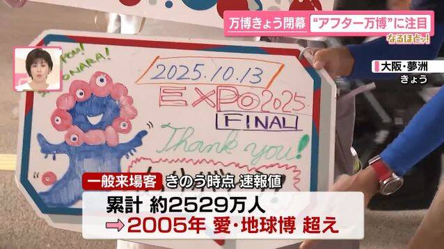 グッズ販売でも記録的な数字を残した。協会によると、8月末時点での公式ライセンス商品の売上は約800億円に到達。「ミャクミャク」のぬいぐるみくじやフィギュアなどが大ヒットし、会場内外の公式ショップには連日行列ができた。人気の高まりを受け、協会は当初10月13日までとしていた販売期間を2026年3月末まで延長することを決定。ミャクミャク関連グッズは引き続きオンラインショップや一部店舗で購入できるようになる。