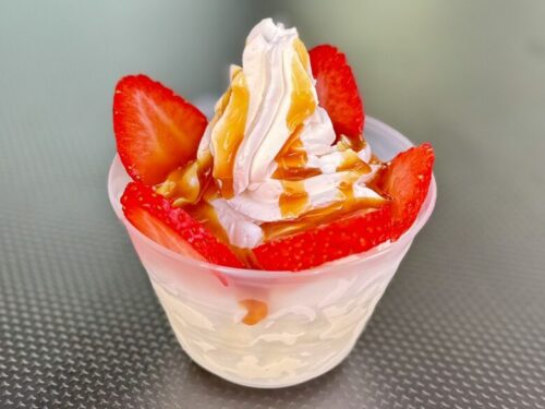 こちらはアサイーボウルよりも小さめサイズのミルクシャーベット。(500円)キャラメルソースかけ。 クリームの下はミルクのシャーベットになっているので、シャリシャリでさっぱり!