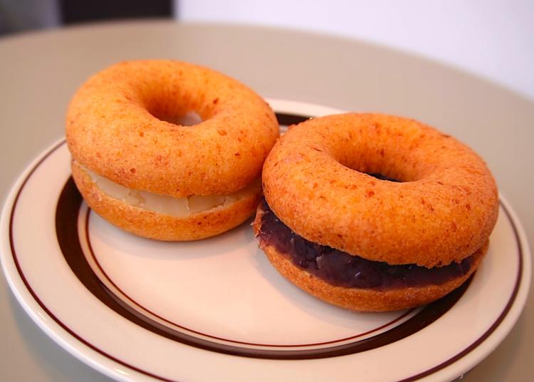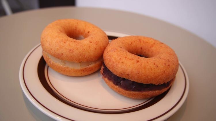 豆腐ドーナツの生地はとてもシンプルなので、和の食材とも相性抜群。 地元・北九州にある「塩崎製餡所」のあんこをたっぷりとサンドしています。