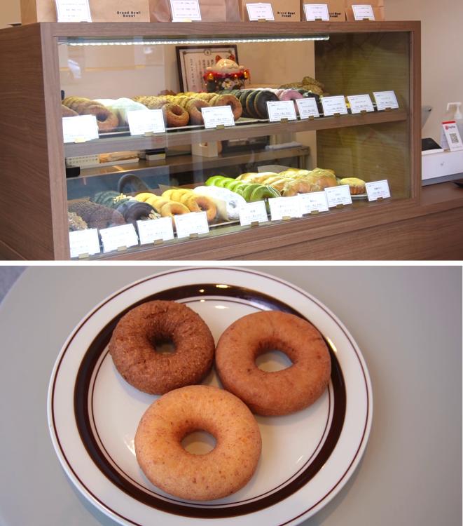 「全粒粉」「豆腐」「豆腐バナナ」という3種類の生地を使い分けたドーナツが、常時17種類ほど店頭に並びます。