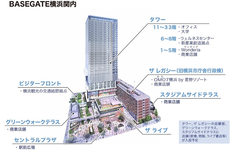 横浜 関内の新ランドマーク「BASEGATE」2026年春開業へ!ホテル・ライブアリーナ・飲食ゾーン・オフィスが一体となった大規模再開発