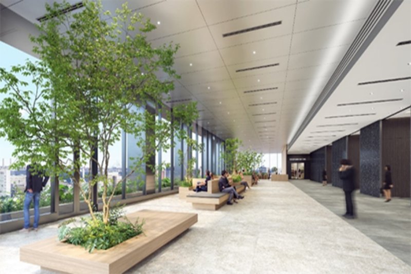 オフィスフロアには、スカイロビーやラウンジ、コワーキングスペースなどが整備される予定です。横浜港や公園、スタジアムを望みながら、多様な働き方や交流を支える環境が整えられます。