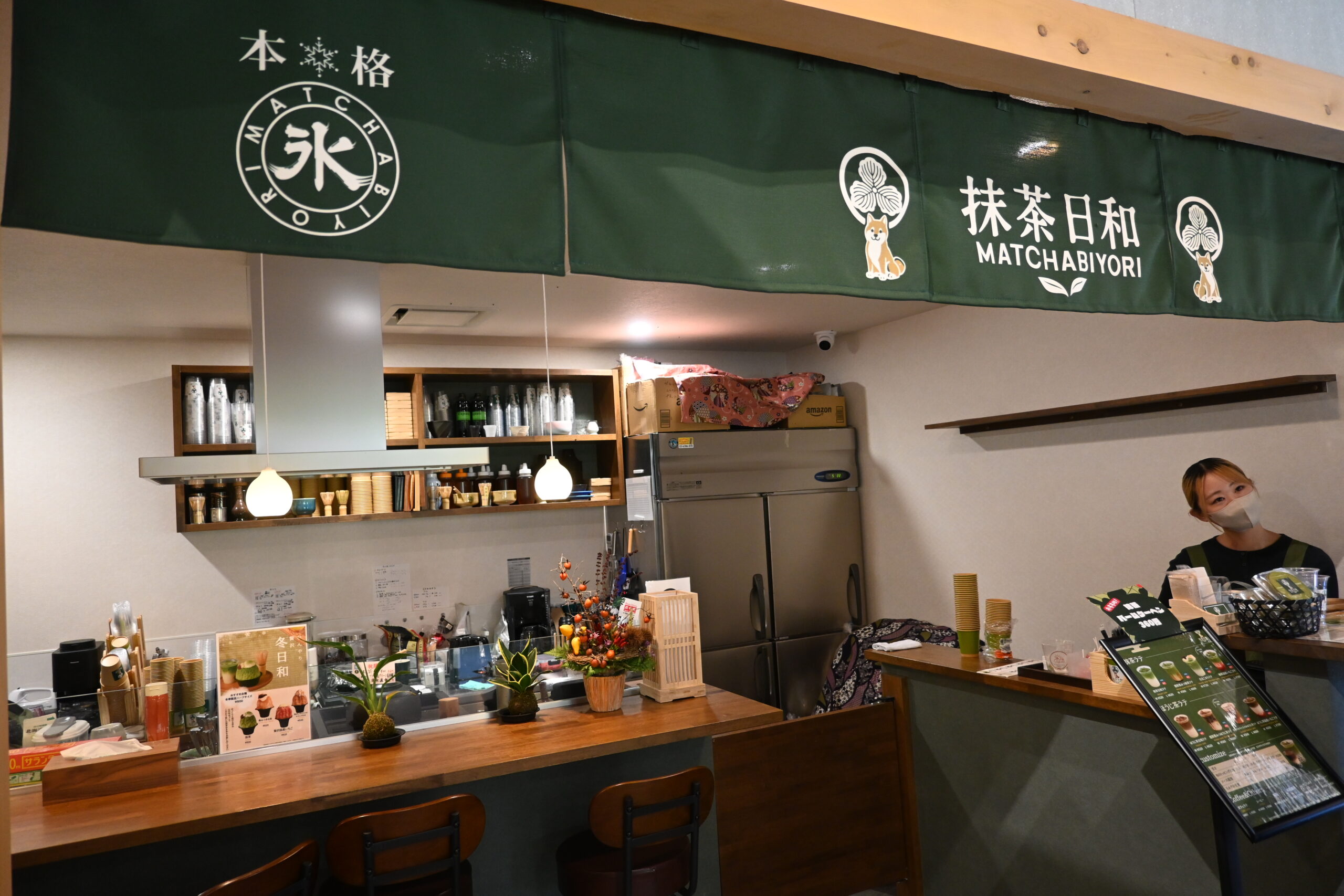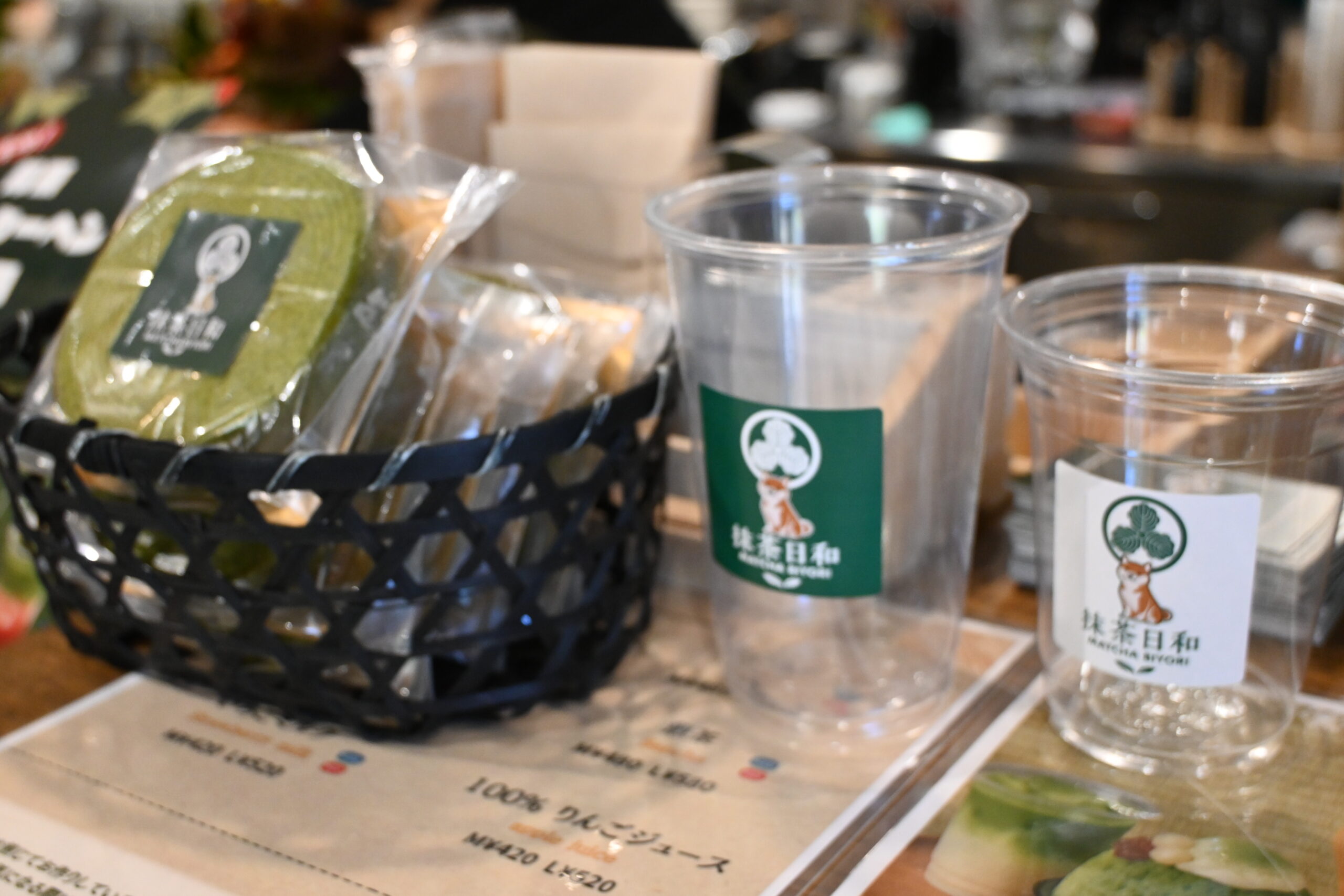 マルシェ棟の一角に店を構えるのが、和ラテスタンド『抹茶日和 -MATCABIYORI-』。コンパクトな佇まいながら、木の温もりを感じるカウンターがどこか優しく、ふらりと立ち寄りたくなる雰囲気をまとったお店です。