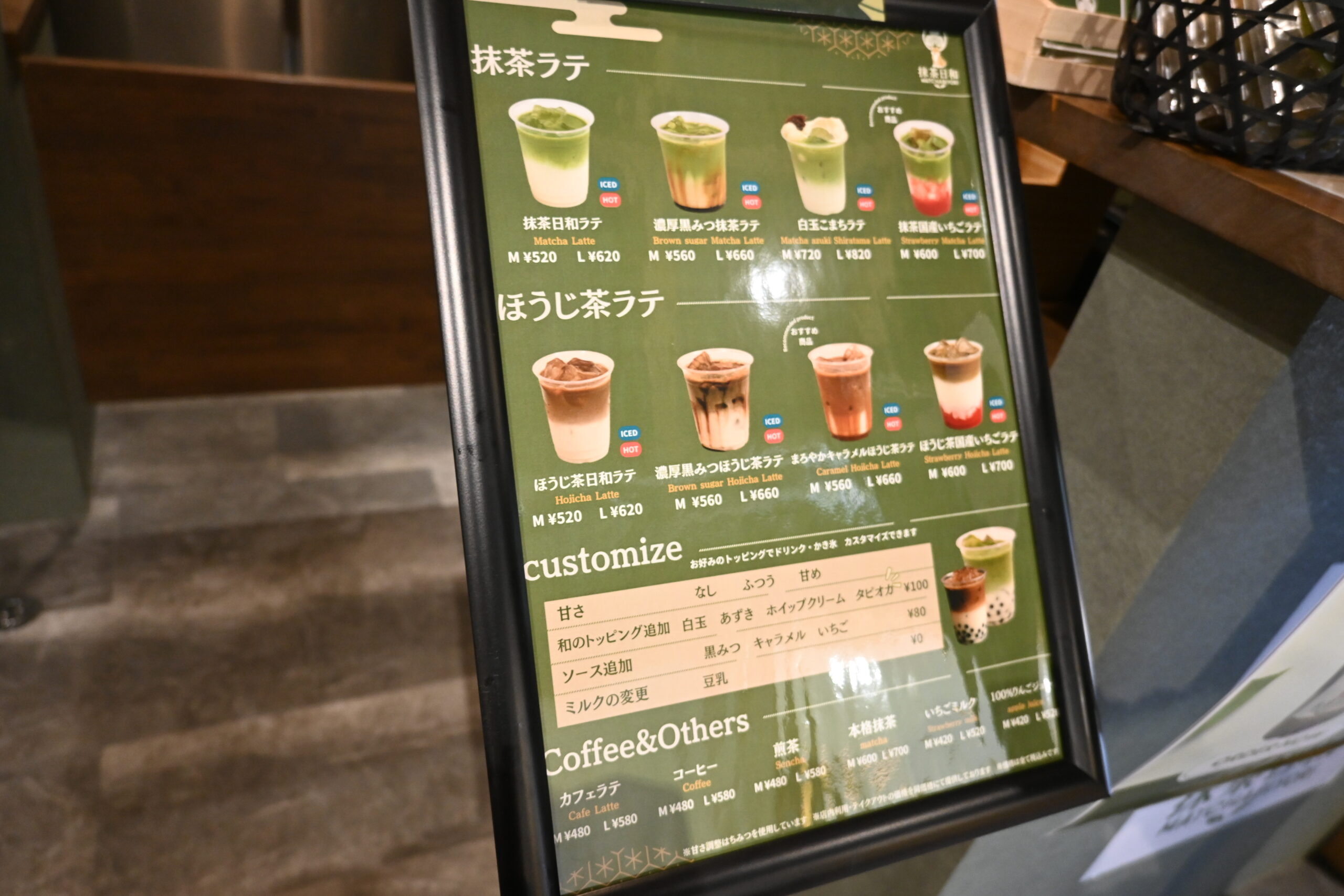 『抹茶日和』では、抹茶ラテだけでなくスイーツや各種ドリンクもそろい、気分に合わせて選べる楽しさがあります。
