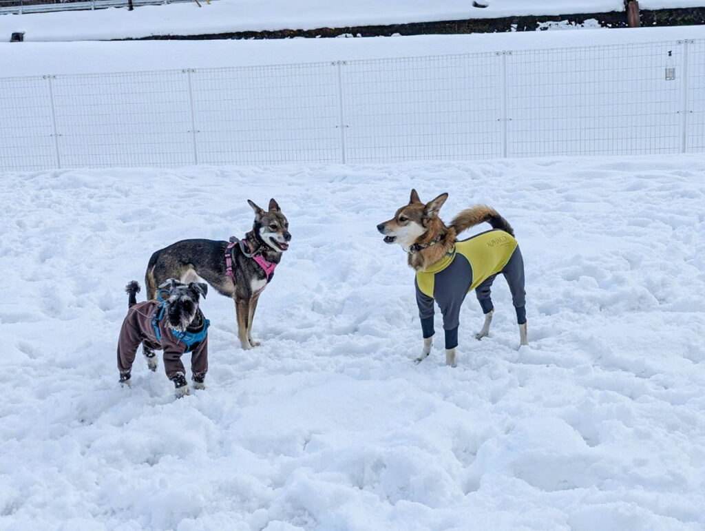 先日na-naで紹介したアフロ姿をしていた「けんすけくん」ともドッグランで知り合い、お友達なんだそうです!