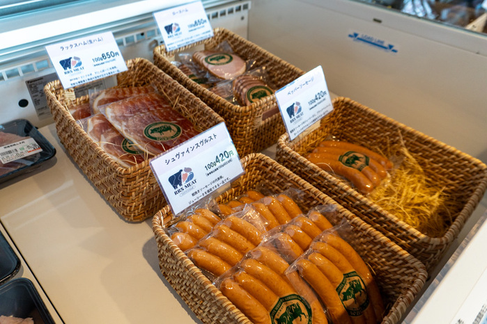 一角には、店主の食肉学校時代の友人が営む、愛知県にある「ハム・ソーセージ工房 ヴァルム」の自家製ソーセージやハムも販売。