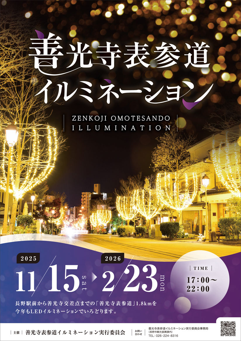 11/15(土)~2026/2/23(月・祝)『善光寺表参道イルミネーション』開催!約1.8kmの光の参道を体感して。初日は「ながの東急百貨店」前広場で点灯式&ライブコンサート【2025-2026年 長野県イルミネーション】@長野市