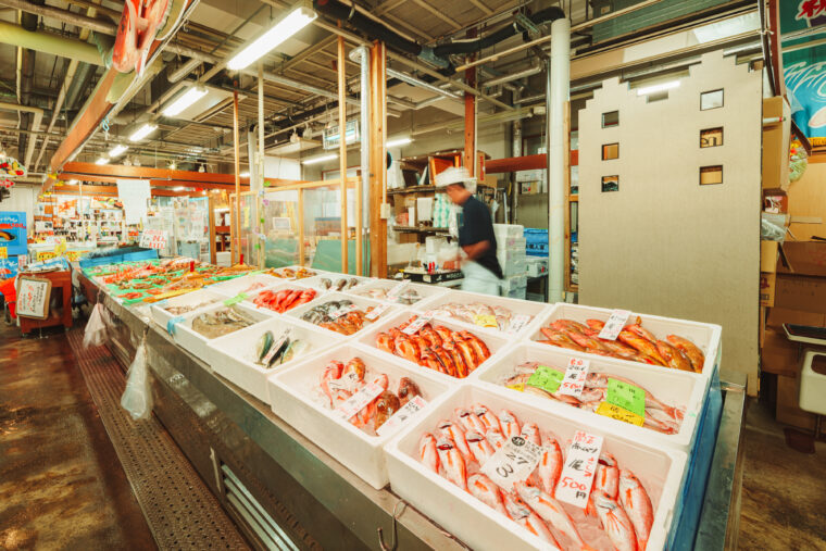 レストランやオリジナル商品も揃う鮮魚市場、温浴施設、プール、ホテルがひとつになった複合施設で、2000年の海の日にオープンしました。