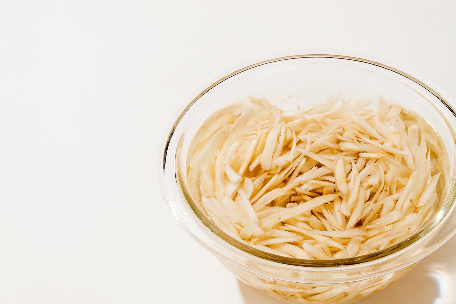 さらす時間は5分以内。風味を保ちながら、苦みもやわらぎます。