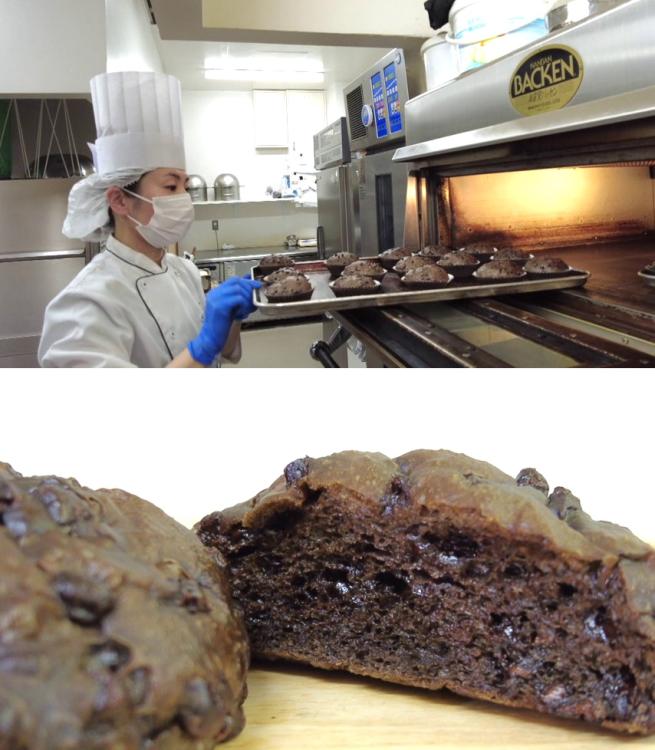 見た目も真っ黒で、粉の1.5倍ものチョコチップを贅沢に練り込んでいます。