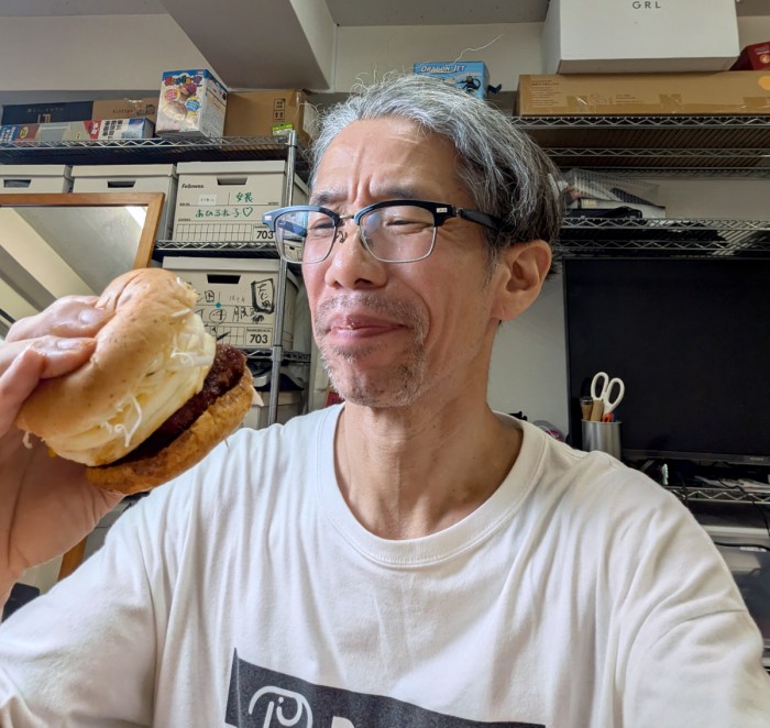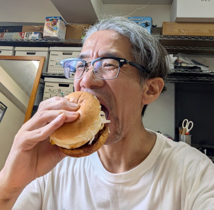 しかもだ、店舗限定商品の「トリプル月見バーガー」は9月2日に販売終了予定なのである。うっかりすると食べ損ねちまうじゃねえか! ってことで、目玉焼き風オムレツが3つものったトリプル月見を食べてみることにした。写真ではたいそう立派な見た目なのだが、実物もはたしてこんな感じなのか? 比較してみた!