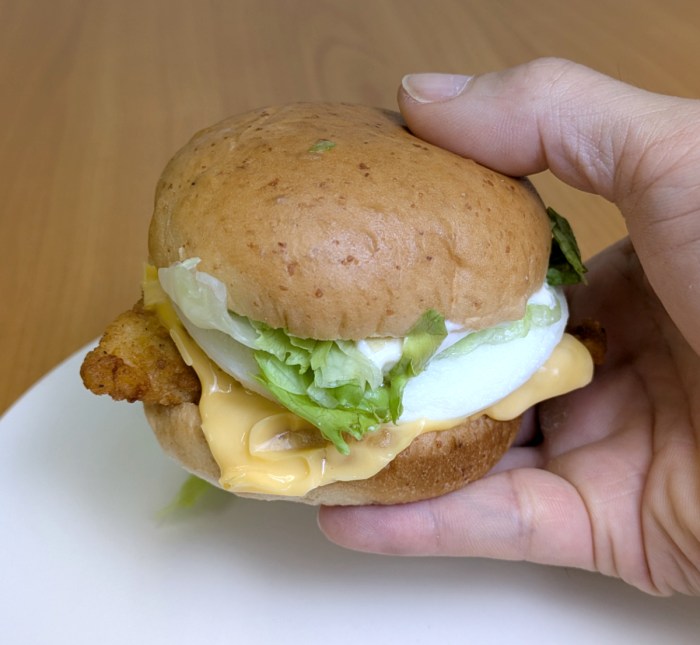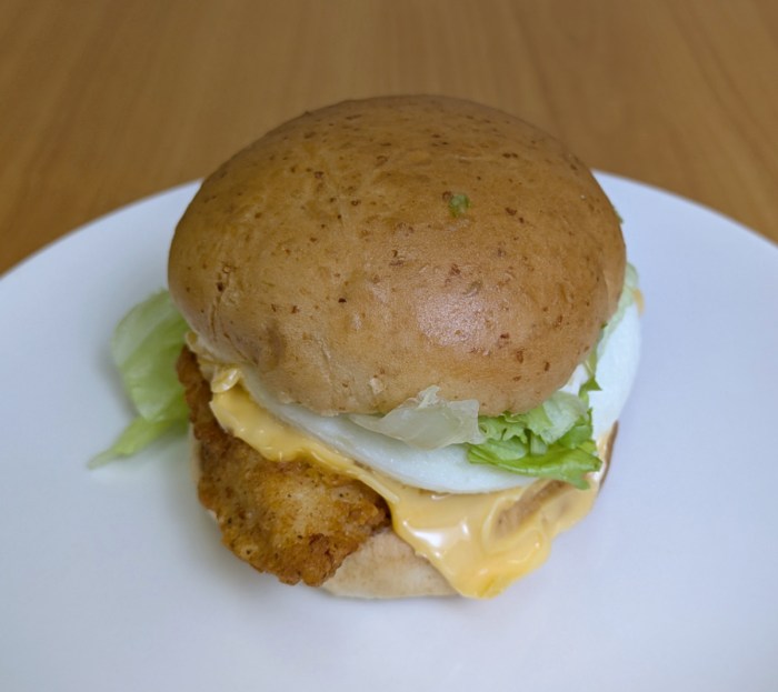 まずは月見チーズフィレを見てみよう。普段、ケンタでハンバーガーを買うことはあまりないので、久しぶりにケンタバーガーとご対面。