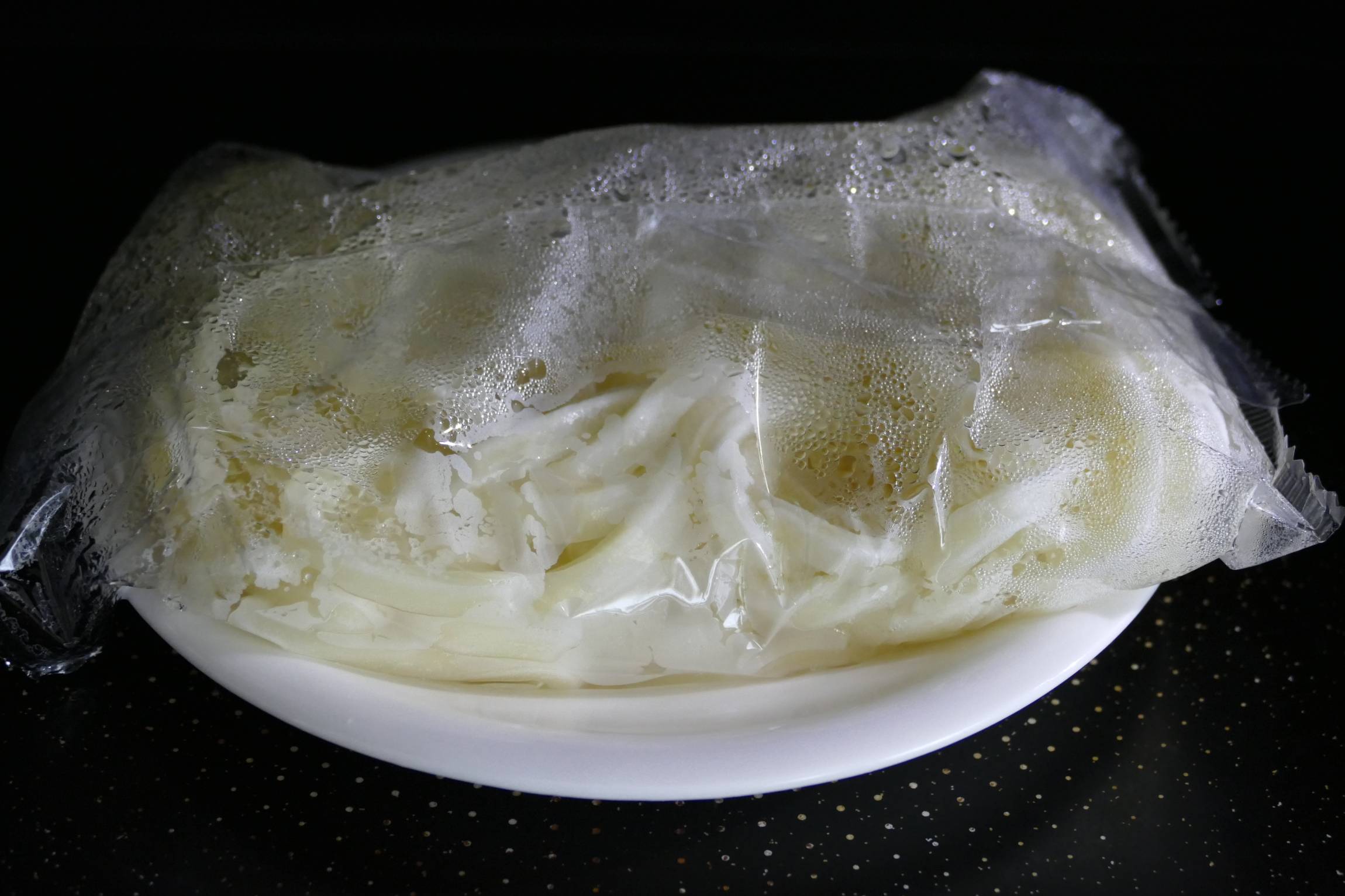 冷凍うどんをパッケージの記載に従って電子レンジで加熱します。