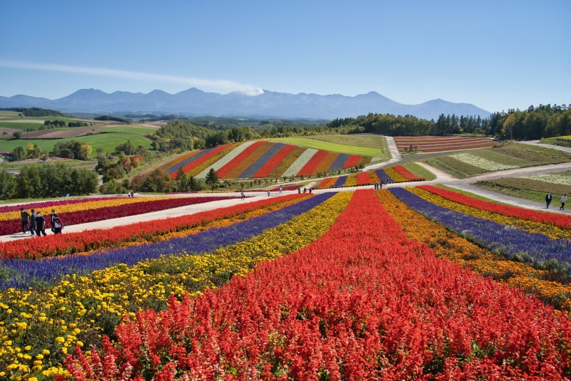 撮影された場所は、北海道美瑛町で美しい花畑が見られる「四季彩の丘」。今回の写真を撮影したのは、花の写真をメインに活動するnocoさんです。「この景色を見た瞬間、“まさに北海道らしい風景”だと感じました」と語るnocoさん。広大な花畑の向こうに、さらに広大な丘陵地帯が続く壮大な風景の美しさに「しばらく見入ってしまった」と振り返ります。