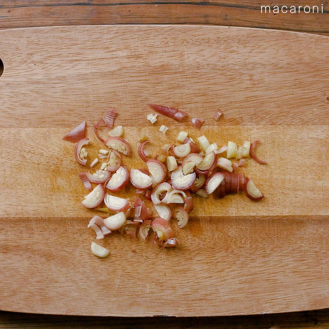 3: ボウルに調味料を入れて混ぜ合わせ、大葉、みょうが、しょうが、長ねぎ、白いりごま、輪切り唐辛子を入れて混ぜ合わせて完成。