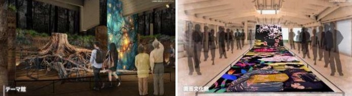 中心となる「テーマ館」では、地球上の生命の8割以上を占めるという植物の未知なる力や真の姿を、最新の映像技術と展示技術を駆使して紹介。