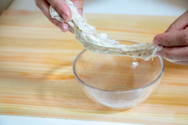 粘り気が強いだけに、生地と混ぜるのにはなかなか苦労しましたが、