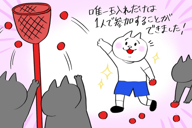 その後の「玉入れ」の競技では打って変わって、長男は先生の元から離れて、一人で楽しそうに参加することができました。
