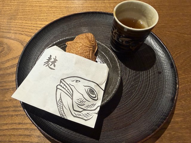 今回は、イートインで鯛やき麩をいただきました。お茶を出してくれるのも嬉しいポイント。
