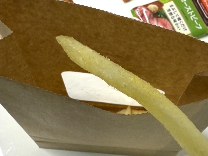 これも美味しい、「ローストビーフ」! ローズマリーだろうか、パウダーの状態でもしっかりと鼻に届くハーブやスパイスの香り。ポテトにかけると、じわっと旨みが染み出すようなリッチな味になる。ここでも肉なんてないのに、肉の芳醇な旨みが感じられるという不思議。ジャンクフード代表格のフライドポテトが一気に高級レストラン料理の顔に!
