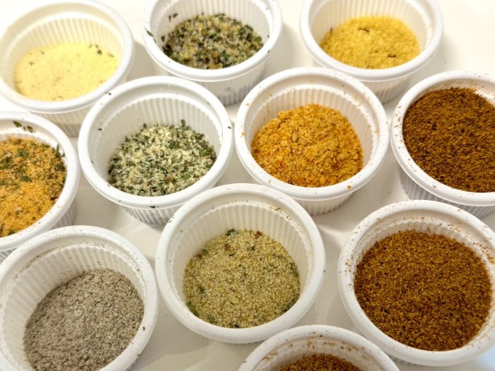 複数のシーズニングを用意してパーティーメニューにすると楽しいし、料理でシーズニングが余ってしまったときの利活用にもよい。
