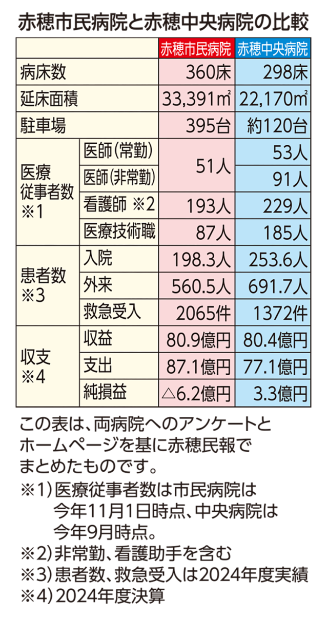 市によると、2024年度実績では赤穂市民病院に関する地方交付税の算定額は3億1300万円。また、建物や設備の減価償却費は5億7600万円で市と病院の折半で負担している。