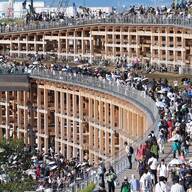 万博のシンボルである木造のリングは、高さ約20mで一周約2kmの世界最大の木造建造物です。計画では、その一部(北東側の約200m)を現地に残し、開発事業者にモニュメントとして活用したり、部材をベンチやバス停などに再利用(リユース)したりする案を求めていく方針です。