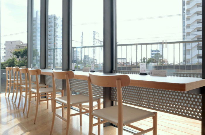 奥に進むと座席が設置されており、こちらの「電車テラス」はその名の通り、列車を目の前に見られるいわば”特等席”となっています。電車好きの子どもにもよさそう♪
