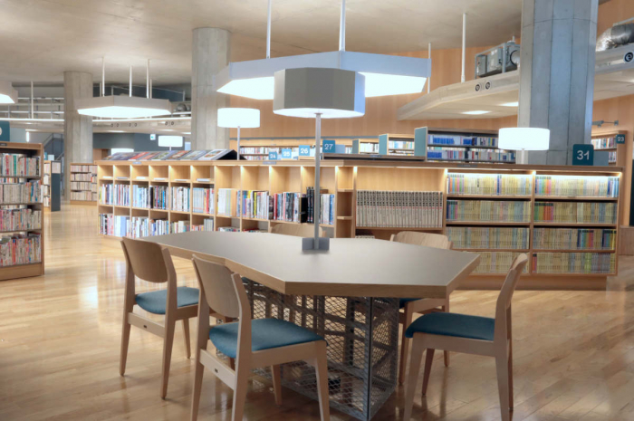 敷地面積は686㎡から2,200㎡へ、本の数も9万冊から12万冊、座席数も68席から316席へと大きくリニューアルされました。