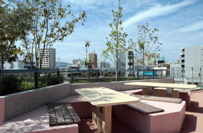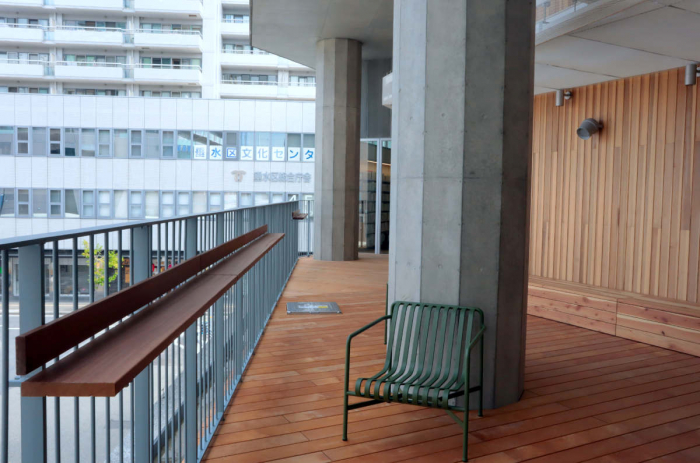 また「バステラス」は施設内で唯一飲食OKのエリアとなっています。神戸市産材を使ったベンチなどが設置されており、開放感も抜群でしたよ♪