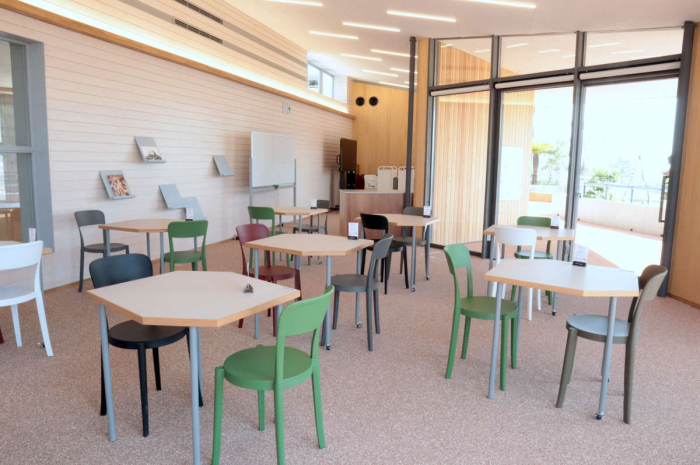最後に、記者が一番気になっていた屋上のある4階部分へ。上がってすぐの場所には、イベントなどに使用できる「うみテラス」があります。