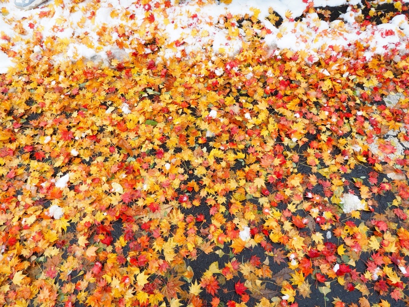 「めっちゃきれい!」札幌で出会った“秋と冬がすれ違う瞬間”が美しすぎる!落ち葉と初雪のコントラストに感動の声「宝石みたい」